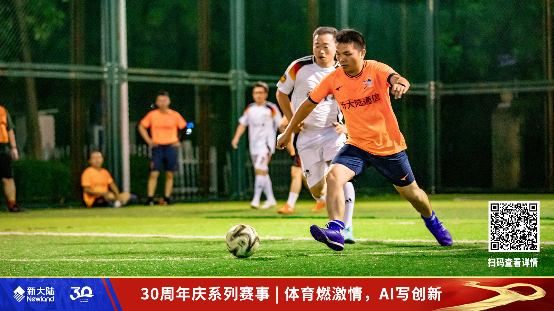為慶祝新大陸集團30周年慶,新大陸工會策劃了一系列賽事活動,包括各類體育競賽、工人實操技能競賽、英語演講和人工智能競賽,旨在展現新大陸人的蓬勃朝氣、昂揚精神和創新力量。來自集團聯隊、支付公司、軟件公司、國通公司、通信公司、自動識別的六支精英球隊,自8月6日起,以球會友,在綠茵場上為觀眾帶來了一場場足球競技盛宴。