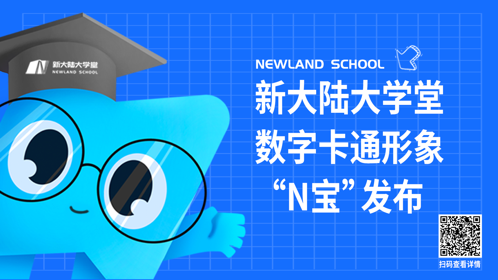 N寶,設計理念來源于新大陸大學堂的LOGO創意——兩本重疊的書與“Newland”中“N”字的巧思卡通化延展而來,既是對“Newland”新大陸品牌名稱的致敬,它也象征著知識與智慧的“新”火相傳,代表著新大陸大學堂作為知識燈塔的堅定使命,追求新知、勇于創新的精神。