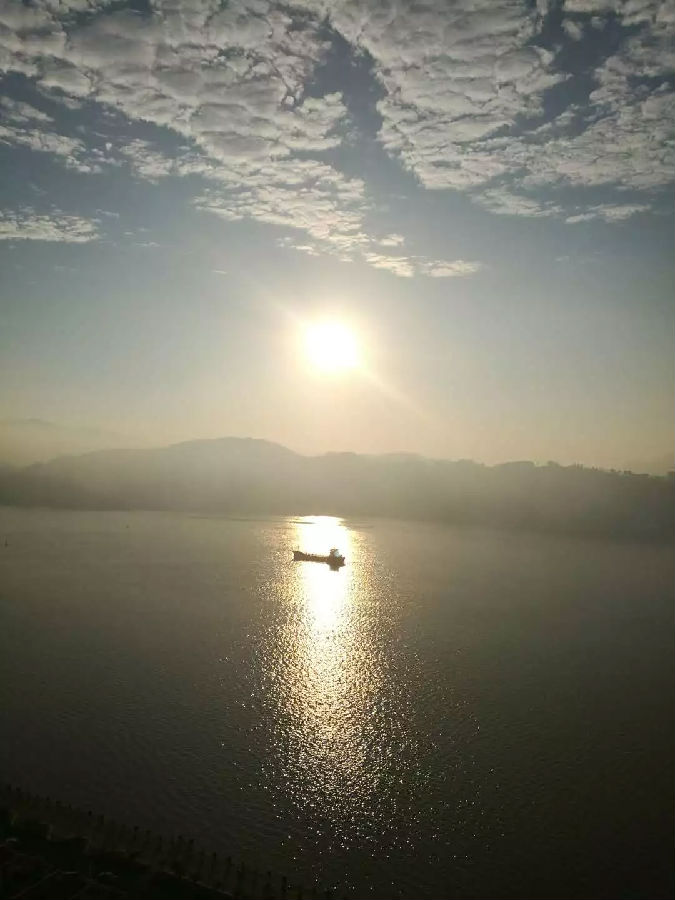 編者按:初春的早晨,王晶總裁在自己家的陽臺上,看到了這幅靜謐悠遠,渾然天成的畫面,她為之深深地震憾,隨即抓拍了這個帶有異像的自然景觀:一束晨光,一葉小舟,一位船夫,遠山近水,波光鱗鱗的水面與七彩的光氳交相輝映......她遐想萬千,即興摁著手機的鍵盤,將自己的所思所想所感,凝成一首題目為《篤定》的詩文,籍此表達了她對企業(yè),對人生的思考與感懷。