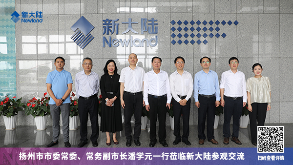 5月24日,揚州市市委常委、常務副市長潘學元率隊蒞臨新大陸參觀交流。揚州市市委副秘書長、市數據局黨組書記、局長朱勇,揚州市市場監督管理局黨組成員、副局長洪昊等陪同參加。新大陸科技集團副總裁林學杰、新大陸(浙江)公司總經理張瞻杭等出席接待。