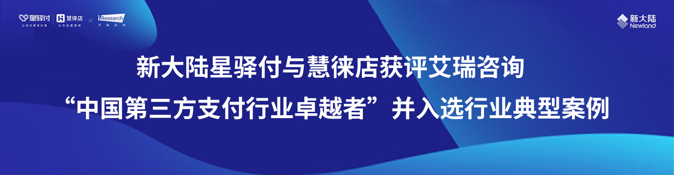 新大陸星驛付與慧徠店獲評艾瑞咨詢“中國第三方支付行業卓越者”并入選行業典型案例