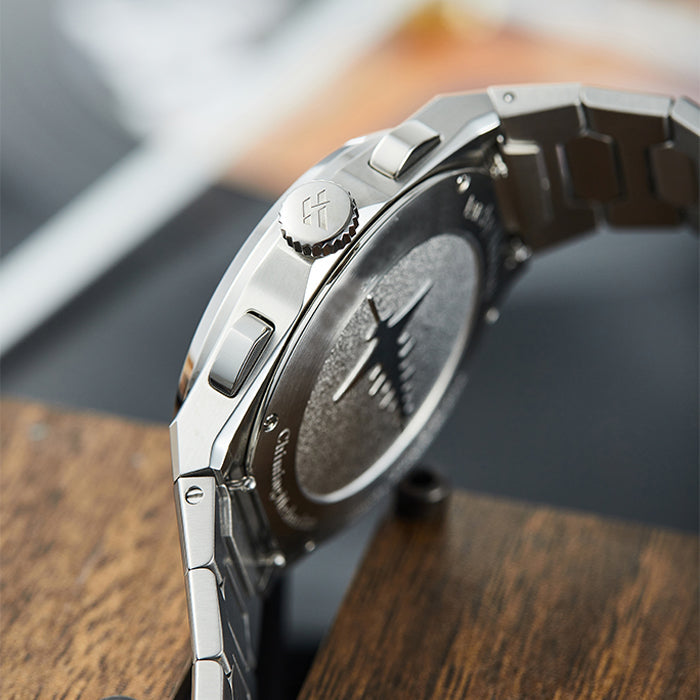The case is crafted from 316L stainless steel, sized 40 mm in diameter and about 11.95 mm thick, balancing wearability with presence. A sapphire crystal protects the dial from scratches. The watch is rated 50 meters water resistance and has a daily rate of ±20 seconds. The strap options (stainless steel or leather) feature quick-release or butterfly clasps, with fitting lengths from ~150 to 210 mm. At ~150 g, it feels solid but comfortable on the wrist.