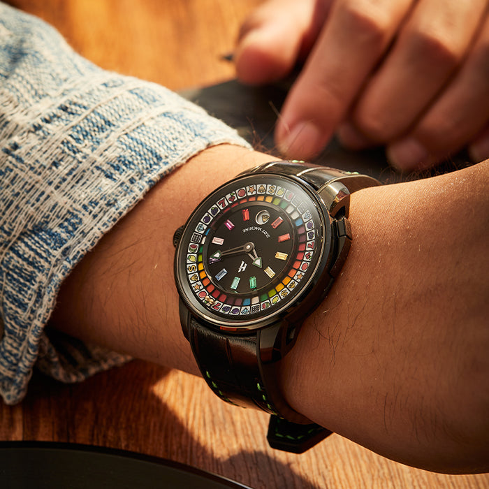 The Slot Machine Watch – Black Player Series is a bold and expressive timepiece created for collectors who appreciate statement design, playful luxury, and visual storytelling.
